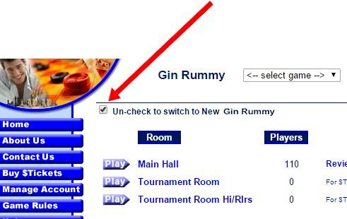 When you view the room listings, as in the picture below, you can check or un-check the checkbox and it would switch you between New Gin rummy and Java Gin rummy. With the checkbox un-checked, entering Main Hall will show New Gin rummy: