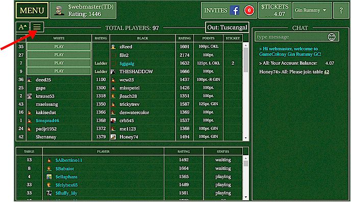 GameColony.com has introduced a second 'big-chat' layout or 'classic layout' for gin rummy, dominoes, cribbage and backgammon. This big-chat layout is a default only for tournaments rooms.