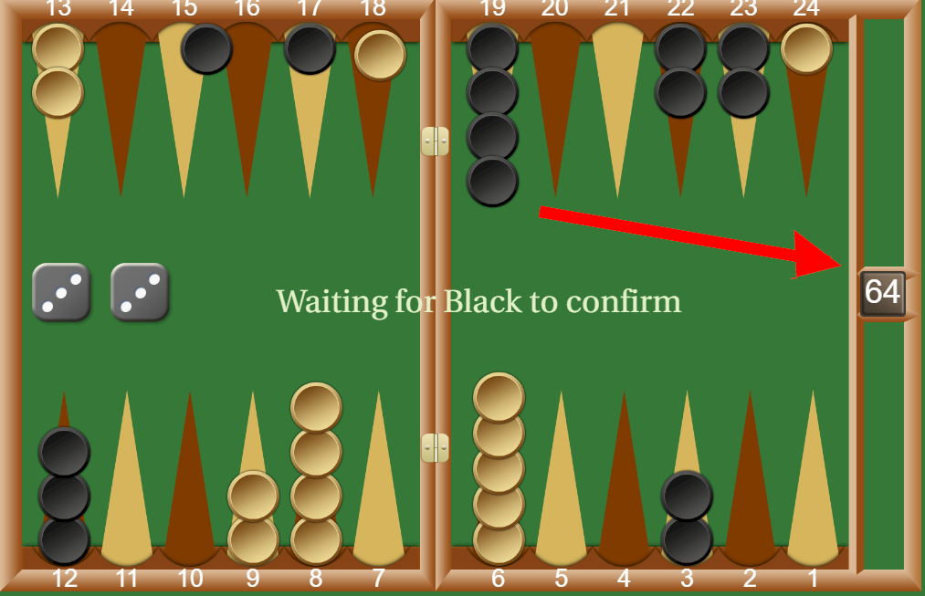 - A location of the doubling cube on the board is shown with the red arrow: